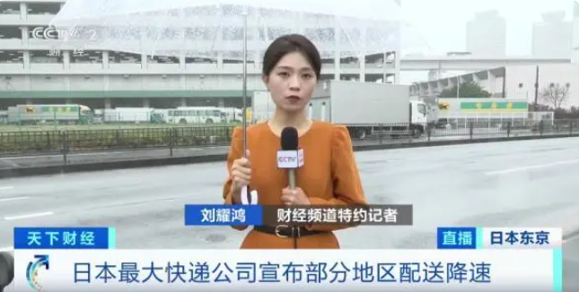 财经频道特约记者 刘耀鸿:在日本最大的快递公司雅玛多的一处大型物流中心,尽管今天下雨,这里的业务依然十分繁忙,不时有快递卡车进出。就在近日,雅玛多宣布将从6月起,对日本国内部分地区之间的货物配送取消次日达,改为第三日送达。以东京发往日本其他一级行政区首府为例,无法次日送达的比例将从目前的约两成增加到四成。